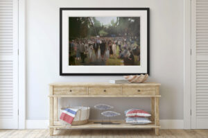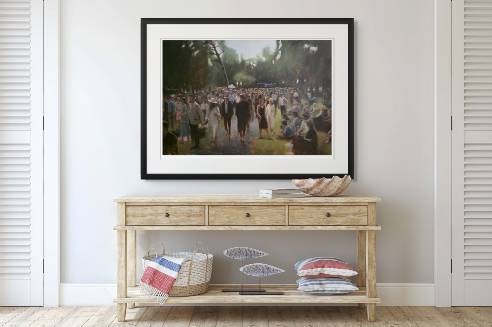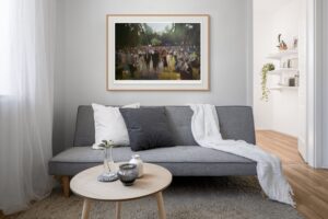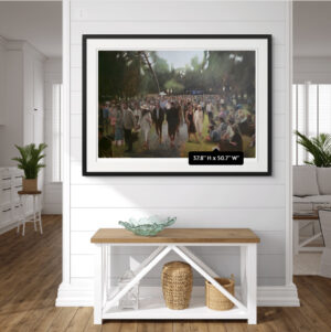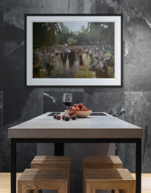 Stadsparken, Lund fångar känslan av en levande sommarkväll där människor, ljus och rörelse möts i ett tidlöst ögonblick. Motivet är en hyllning till gemenskapen och stämningen som gör parken till en av Lunds mest älskade platser.